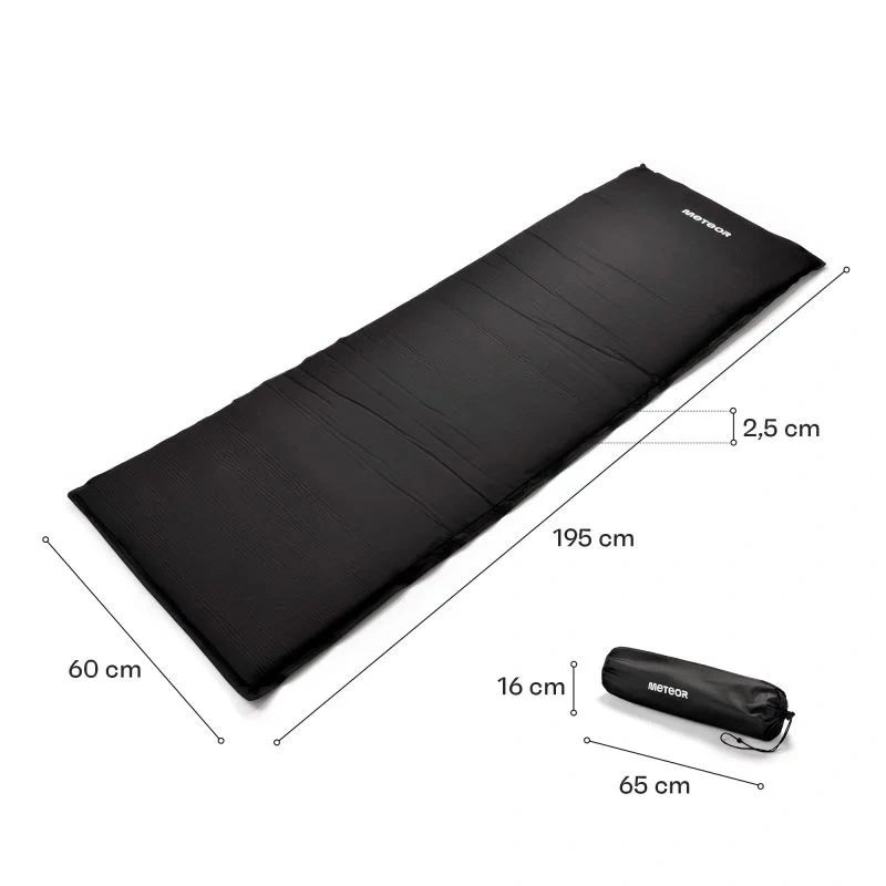 Samonafukovací rohož Meteor 195×60×2,5 cm černá 16432