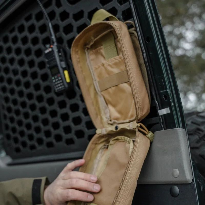 - Velmi oblíbená a univerzální taktická odtrhávací lékárnička vyrobená z odolného polyesteru, který je odolný proti poškození.