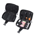 - Na zadní straně pouzdra se nachází odnímatelný upevňovací panel na suchý zip, na kterém jsou rovněž umístěny popruhy PALS (Pouch Attachment Ladder System) s karabinami umožňujícími připevnění lékárničky k opasku, taktické vestě nebo batohu.