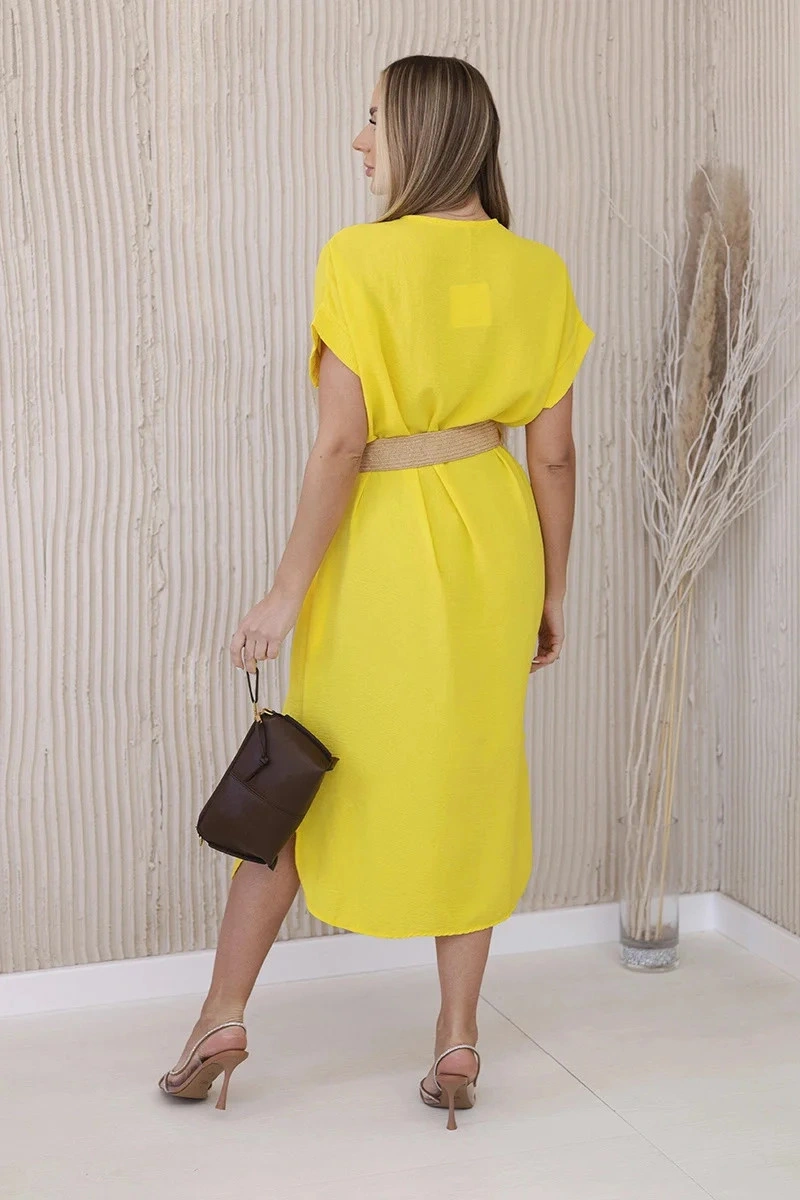 Představujeme vám pohodlné šaty s ozdobným páskem. Šaty mají ve spodní části boční rozparky. Šaty jsou vyrobeny z vysoce kvalitního materiálu. Velmi zajímavá nabídka pro všechny dámy. Velikost je univerzální a vyhovuje dámám, které nosí velikost S, M nebo L.