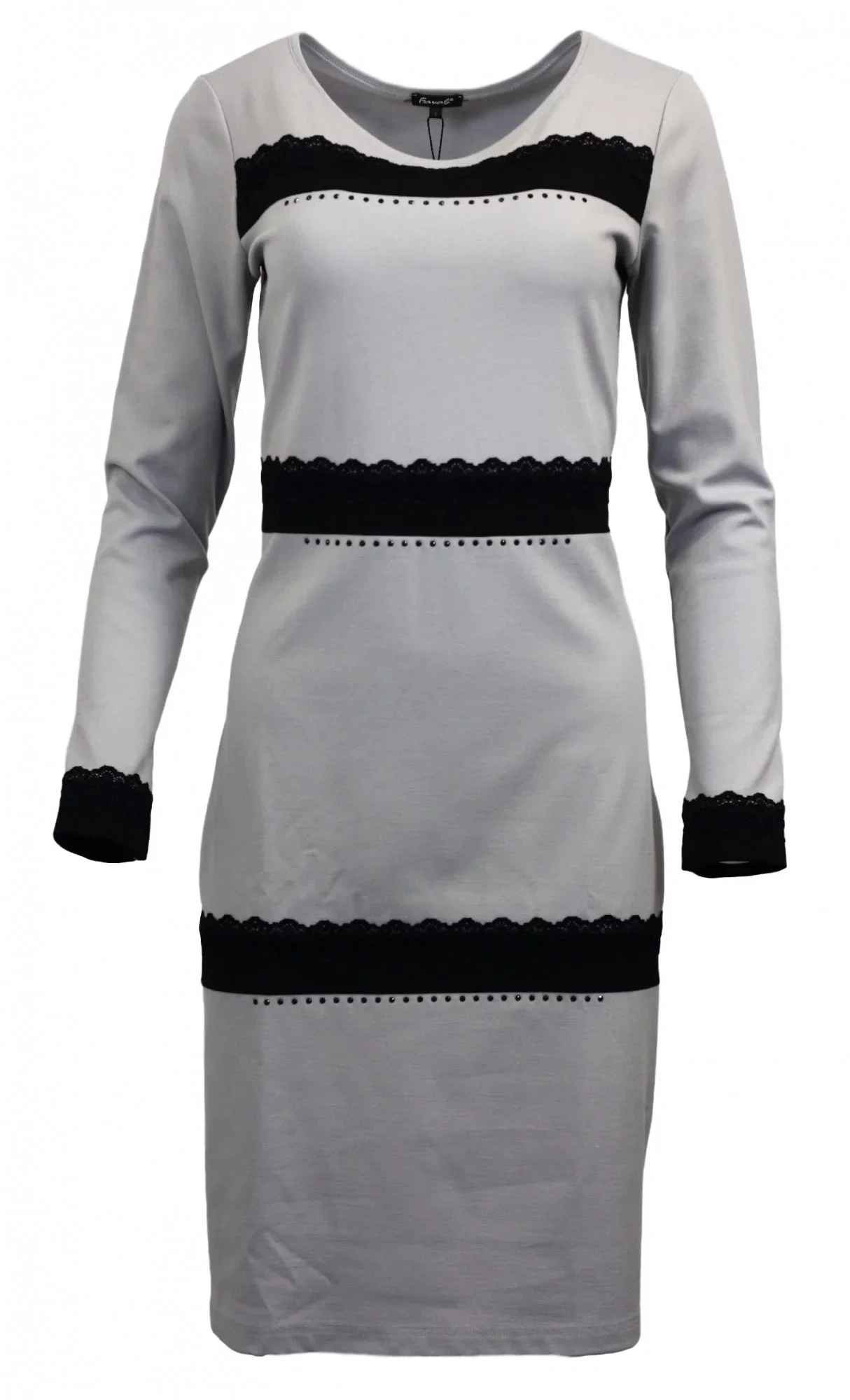 Šaty CILIA Drm - Favab šedá s černou krajkou L