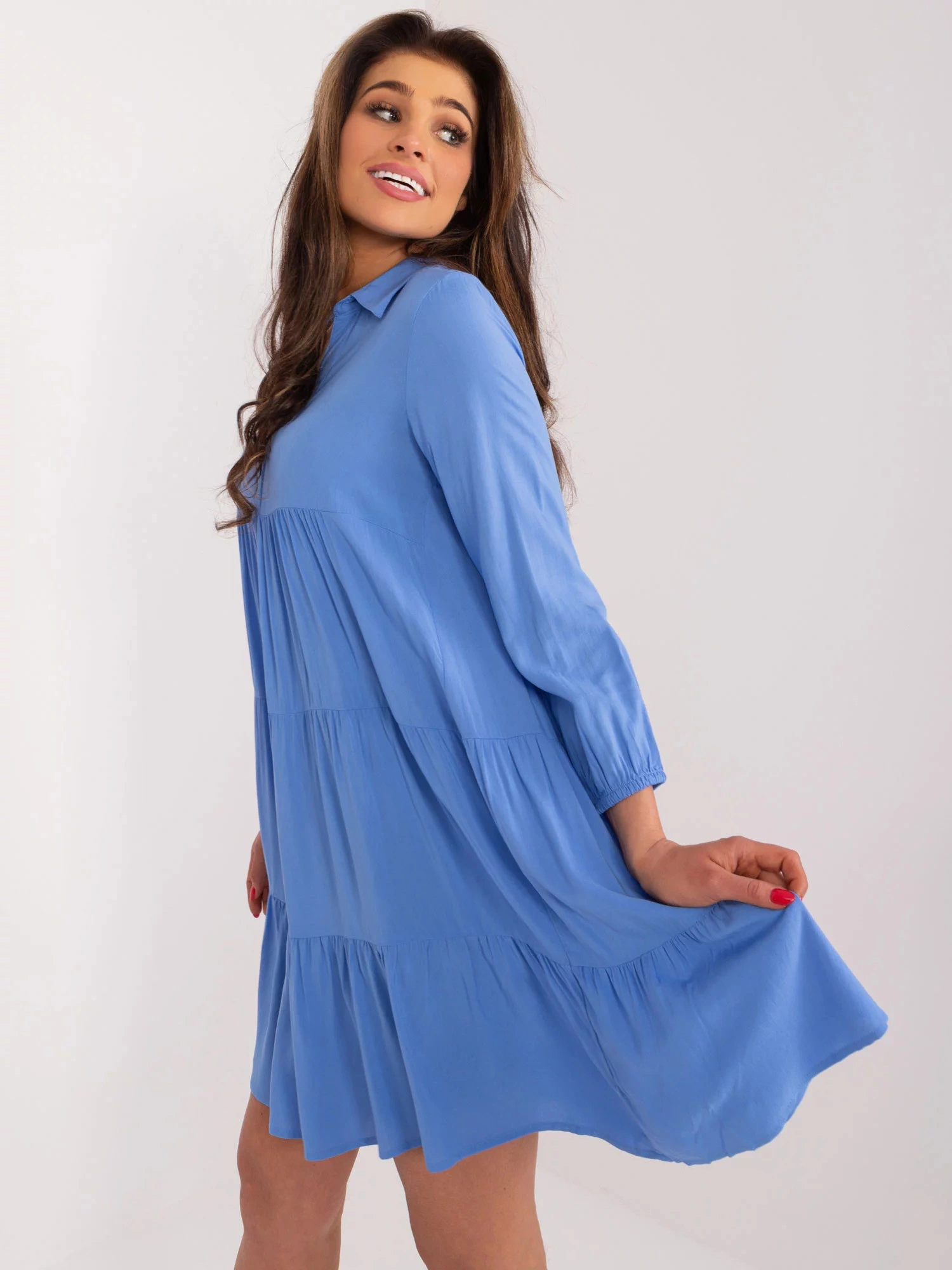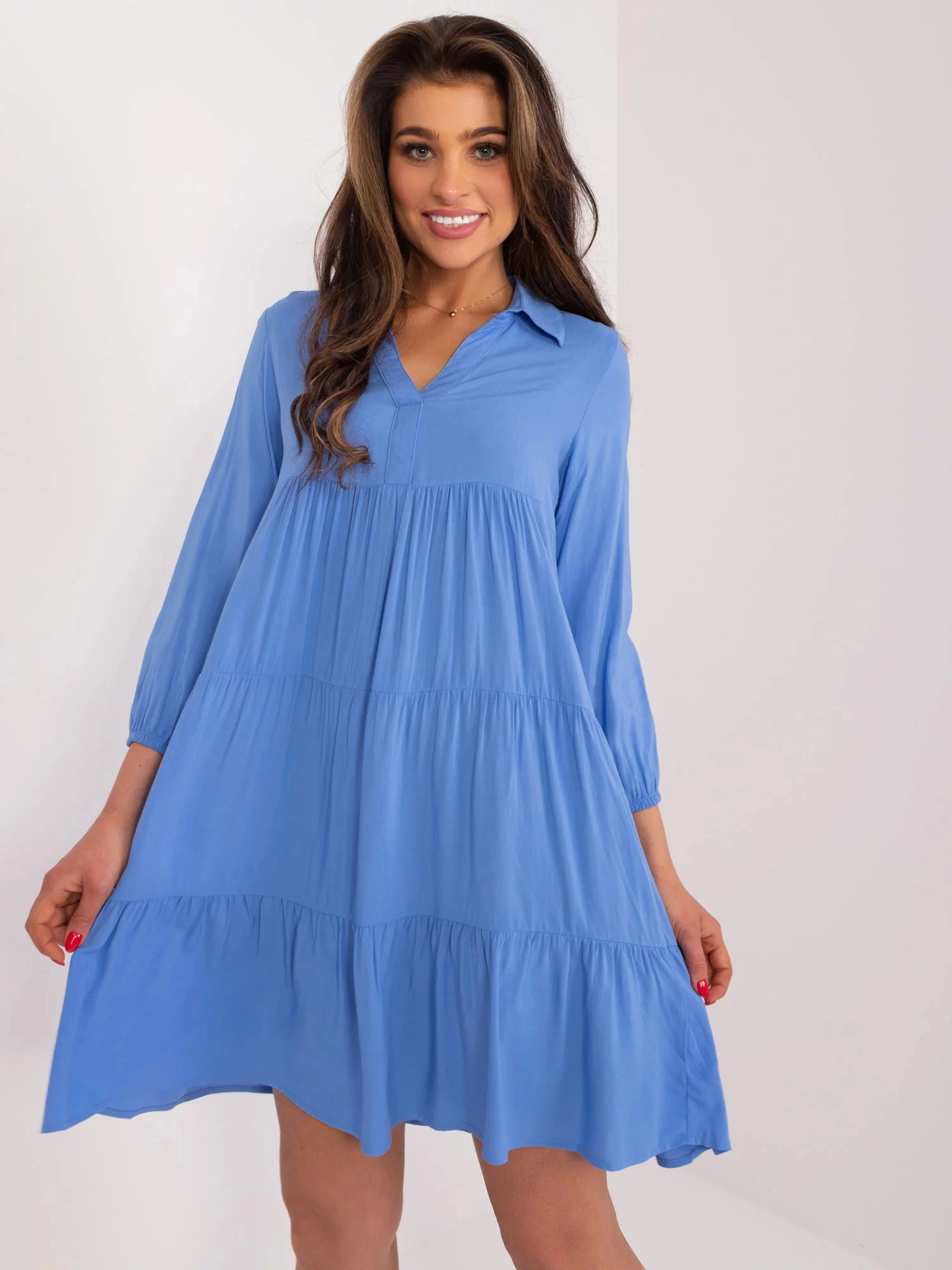 Rozměry šatů ve velikosti S měřené na plocho: šířka v podpaží - 50 cm, délka rukávu - 49 cm, celková délka - 94 cm.