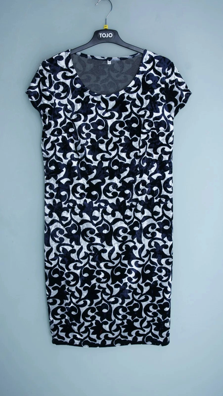 - Dámské elastické šaty s dlouhým rukávem a kulatým výstřihem u krku. - Vrchní část s barevným květi