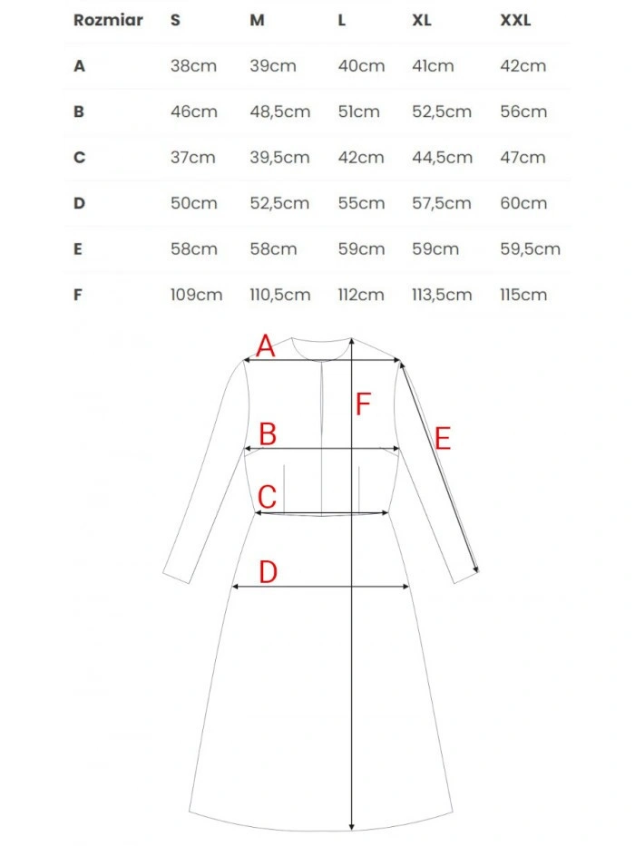 | F | 109cm | 110,5cm | 112cm | 113,5 cm | 115cm |