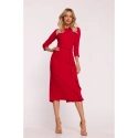 materiál: 95% polyester 5% elastan LÁTKA: hladká tkanina s jemným leskem PODROBNOSTI O PRODUKTU Výstřih: kulatý Rukávy: 3/4 délky Sukně: rovná, s ozdobným volánem podél boční linie sukně, vzadu vysoký rozparek Pas: zvýrazněný jemným střihem a látkovým překrytím Zapínání: skrytý zip na zádech Model: S425 Navrženo a vyrobeno v Polsku Modelka je vysoká 174 cm a nosí velikost S STYL A STŘIH Styl: elegantní koktejlové šaty s volánem Tvar: mírně vypasovaná silueta, rovná sukně zvýrazněná ozdobnými prvky Délka: midi - pod kolena