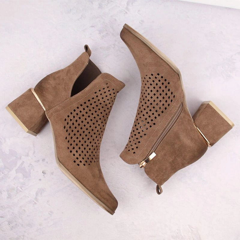 Semišové boty na podpatku Potocki W WOL213B hnědé