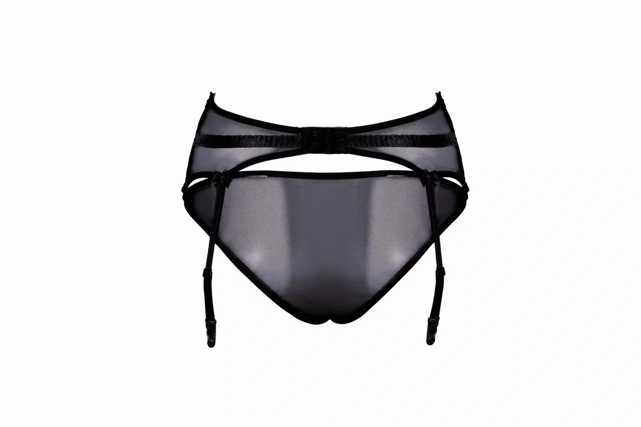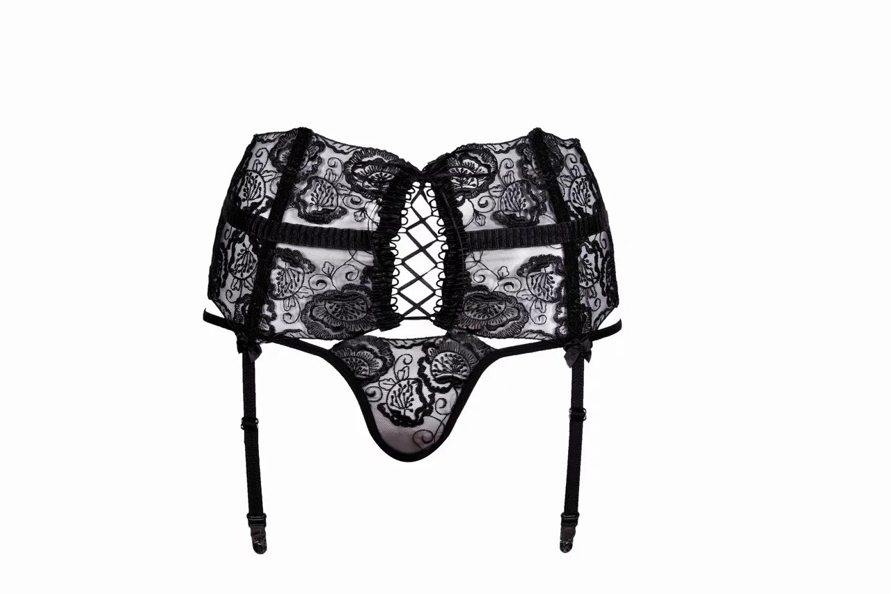 Nádherný podvazkový pás z kolekce Antinéa. Bohatě formované vyšívání spojené s leskem, hry transpar