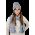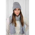 GINNY SET Fenomenální set sestávající z klobouku s širokým ohrnutím přes čelo a měkkého šátku. Vyrobeno z vysoce kvalitní příze s přídavkem vlny. Čepice i šála jsou zdobeny flitry. GINNY je souprava, která poskytne výjimečný tepelný komfort a bude zajímavým doplňkem každé podzimně-zimní stylizace.