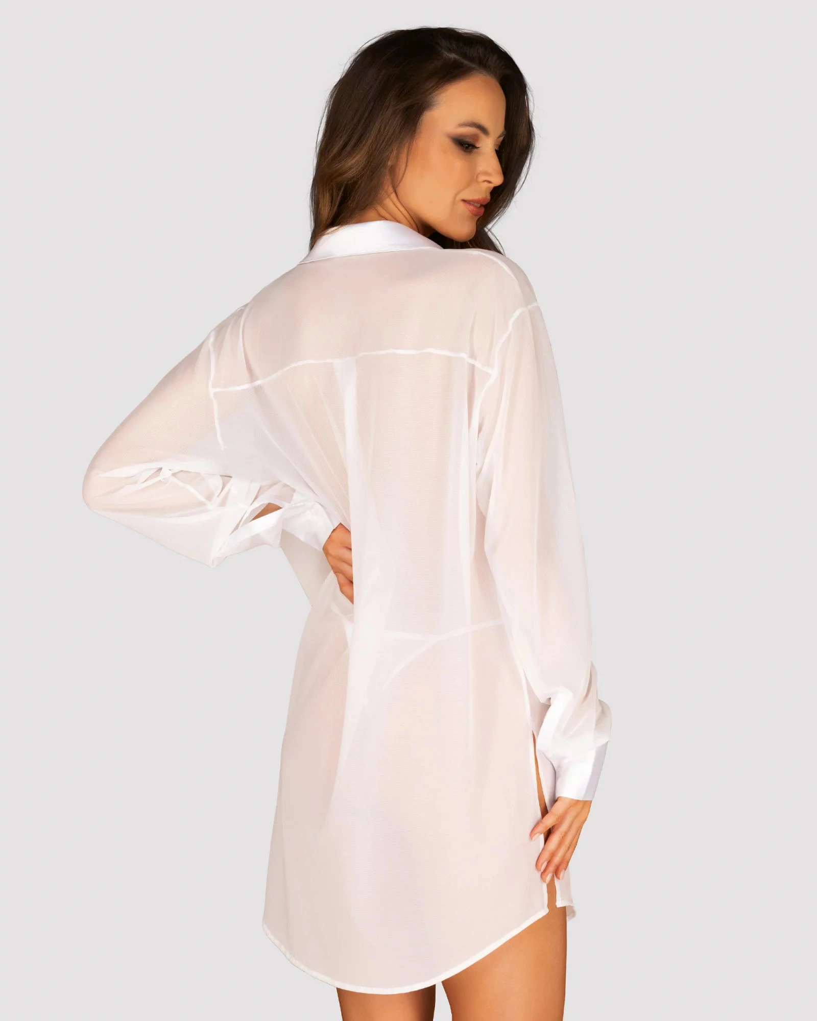 Svůdná a nesmírně elegantní bílá halenka babydoll. Výjimečně ženský střih se bude skvěle vyjímat v ložnici i v každodenních soupravách. Jemný, lehce průsvitný materiál svádí a zároveň ponechává hodně prostoru pro fantazii. Pokud chcete doplnit svůj šatník o sexy a velmi jedinečný model spodního prádla - jste na správném místě!
