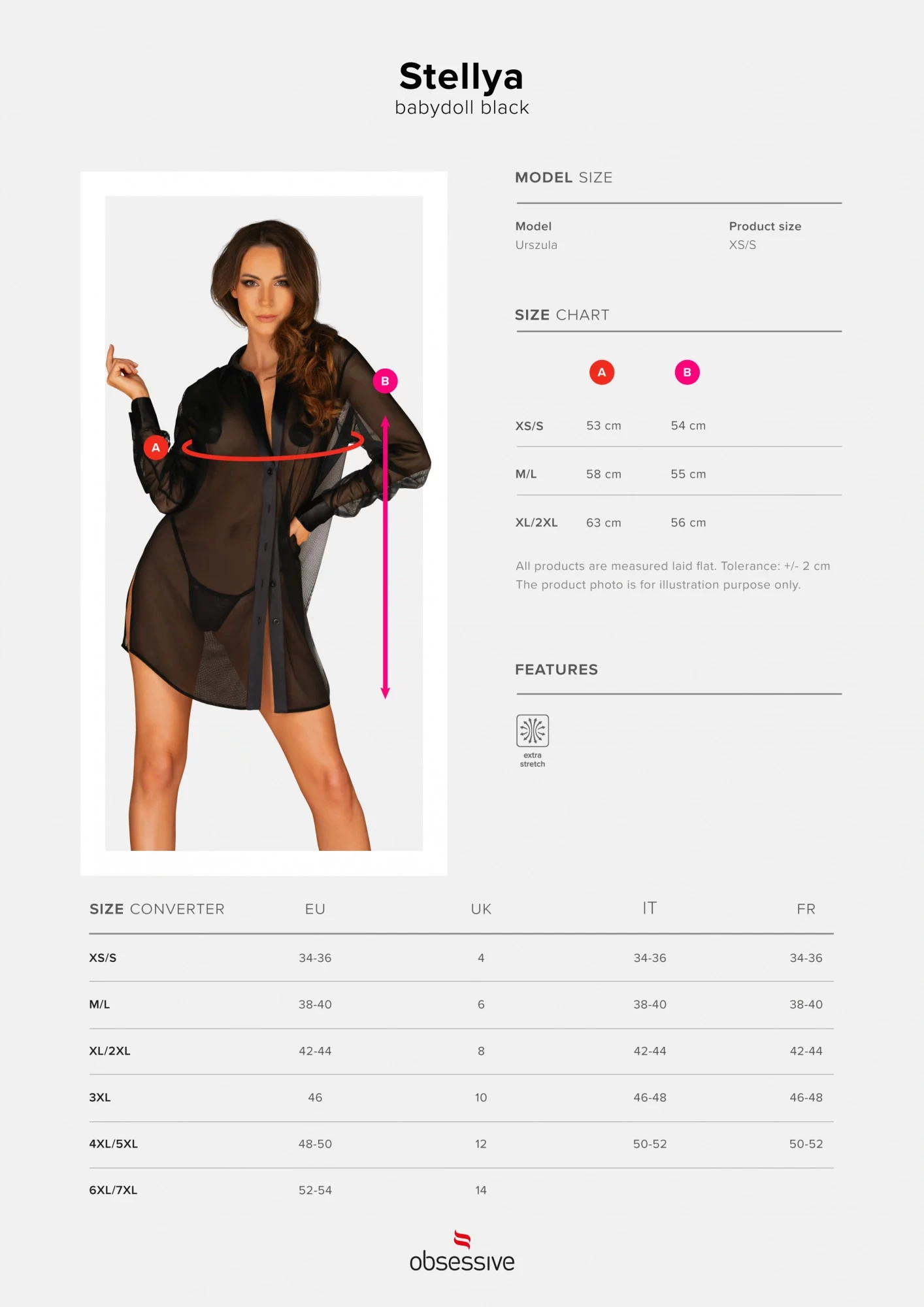 Tento jedinečný model je mimořádně sexy. Střih sahající mírně pod zadeček rozpaluje smysly a jemný průsvitný materiál podněcuje fantazii a vybízí ke strávení opojných chvil v ložnici. Chcete ji kombinovat s džínami v každodenní stylizaci? Bude fungovat dokonale!
