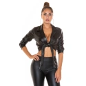 Sexy oříznutá halenka Kunstleder T2880 černá - Koucla UNI