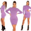 Dámské krátké pletené šaty s hrubým skládáním, délka nad kolena, dlouhé rukávy, u krku mírný stojáček.