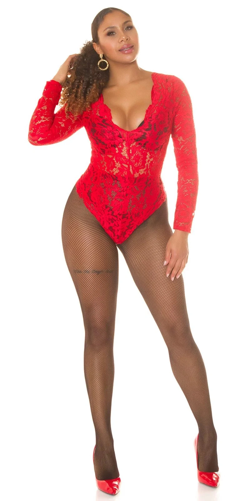 Dámské sexy síťované punčocháče LM2068 červené - In-Stylefashion
