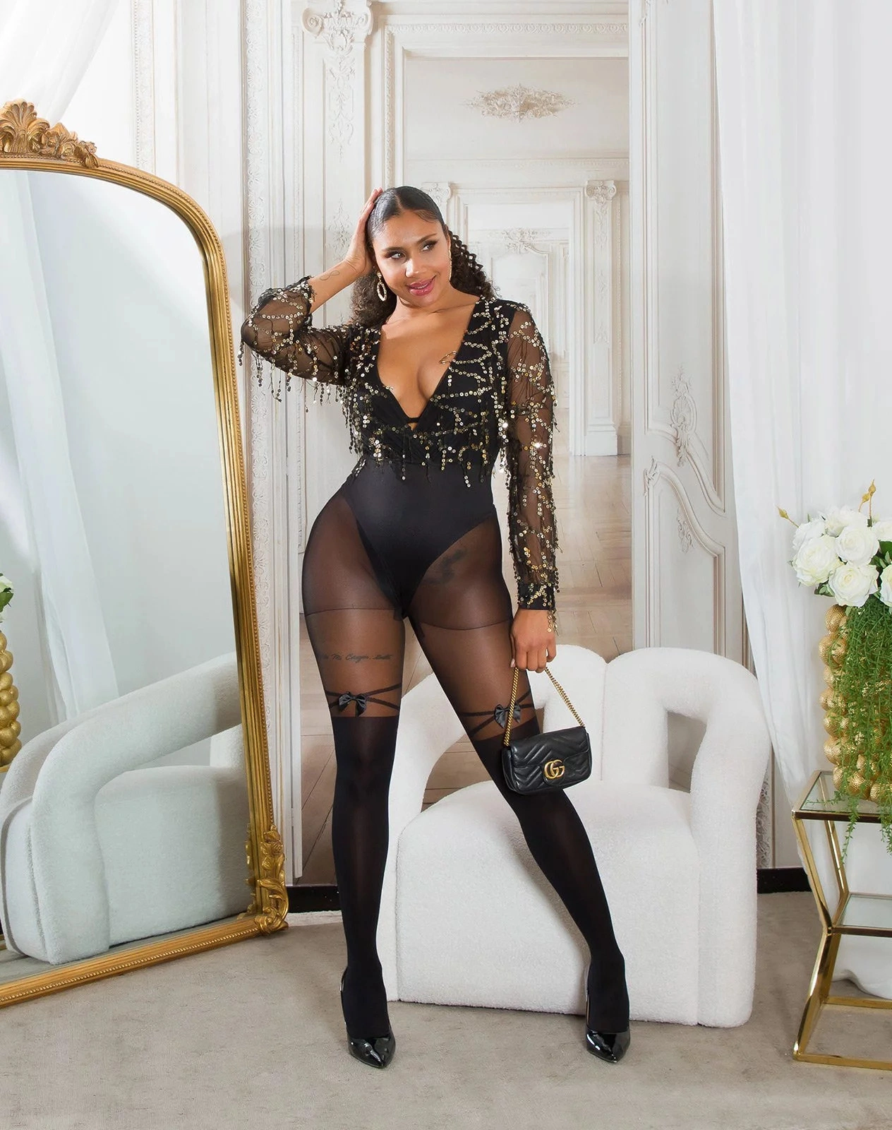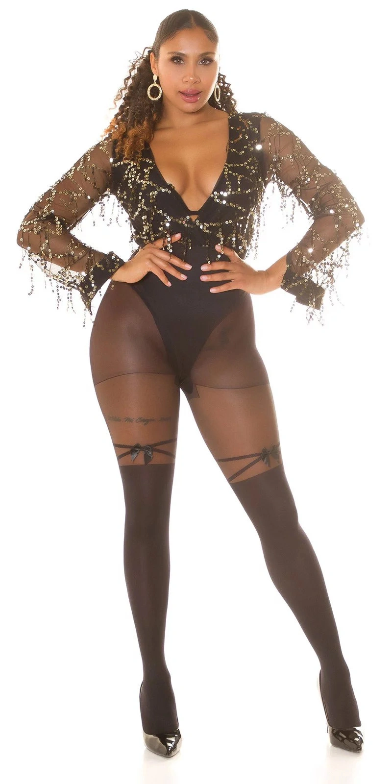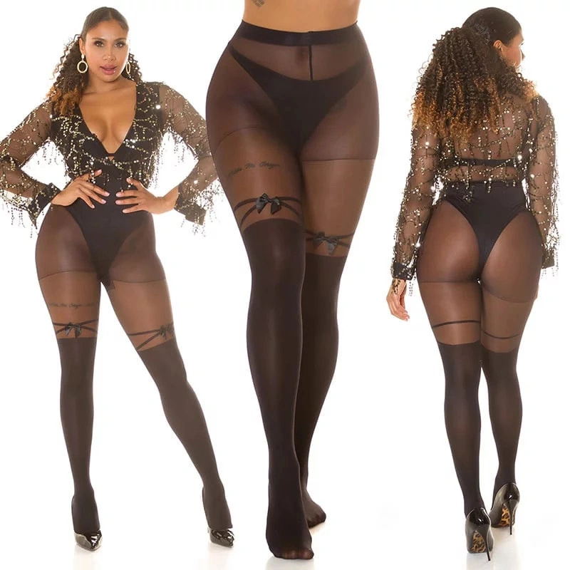 Dámské sexy punčochové kalhoty se vzorem černé - Koucla