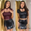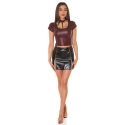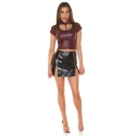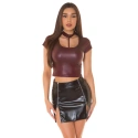 Dámské sexy tričko koženkového vzhledu, s krátkým rukávem.