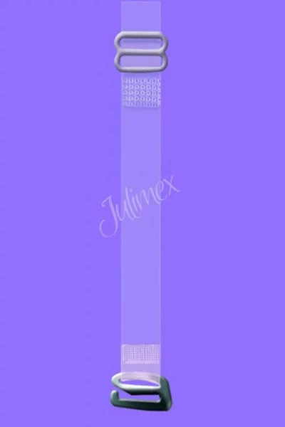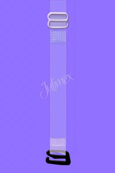 Průhledná silikonová ramínka, 10mm široká. Díky kovovým úchytům jsou ramínka odolnější a jsou vhodná i pro větší poprsí. Úchyty jsou v barvě bílé, černé nebo stříbrné.