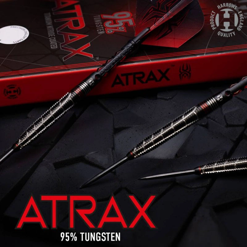 Šipky Atrax jsou dodávány s midi letkami Red Carbon ST, novými křidélky Atrax 100 micron a jsou vyváženy s přesností +/- 0,05 g.