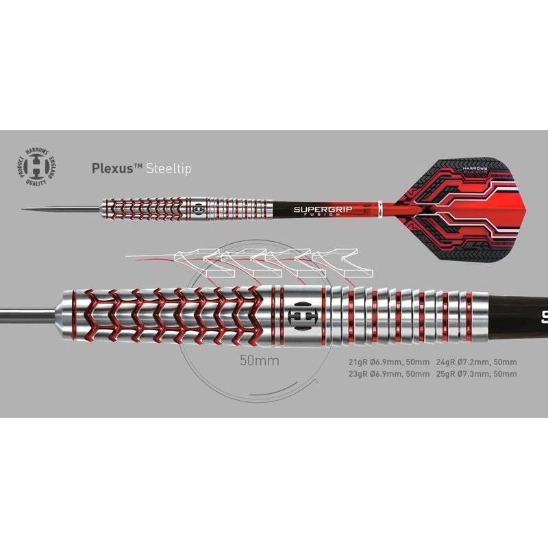 - Koncepce dvojitého úchopu šipek Plexus je složitá síť příčného a bočního frézování s konkávním zpracováním, vše prováděno na nejmodernějším zařízení a dokončeno prohloubeným, živým kovovým, červeným povlakem.