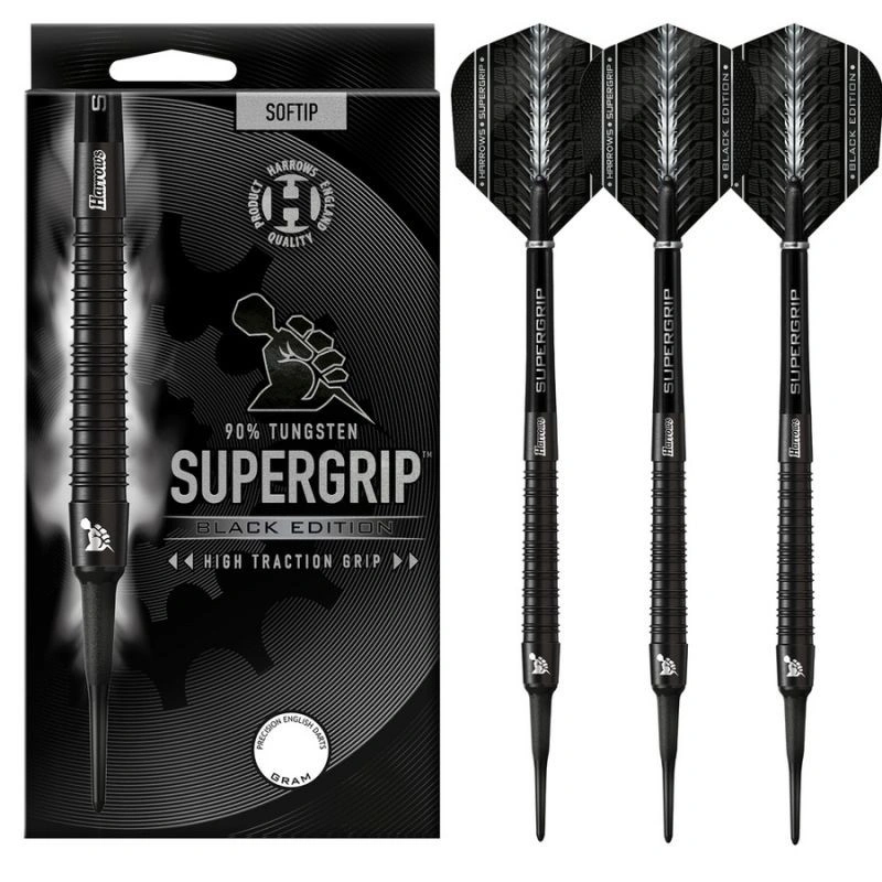 Šipky Supergrip 90% Black Edition jsou vybaveny černými midi letkami Supergrip, novými pérky Supergrip Black Edition o tloušťce 100 mikronů a jsou vyváženy s přesností +/- 0,05 g.