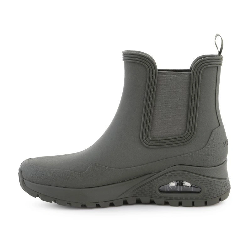 Skechers UNO Rugged 177183-OLV 'Dancing N The Rain' je stylová bota do deště, která kombinuje módní vzhled s funkčností. Svršek je vyroben z materiálu synth-textyl, který je voděodolný a chrání vaše nohy před deštěm a vlhkostí. Tato technologie poskytuje ochranu v drsnějších povětrnostních podmínkách a vytváří tak ideální volbu pro deštivé dny.