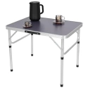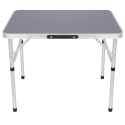 ŠEDÝ SKLÁDACÍ STŮL75X55X25-59CM je základem úspěšného kempování, dovolené nebo rybářského výletu, případně na malém balkoně nebo u jezera, když děti dostanou hlad. Zabere velmi málo místa a je připraven, kdykoli ho potřebujete, protože jeho systém skládání a rozkládání je okamžitý. Stůl má také speciální úchyty pro připevnění dalších nohou, které stůl prodlouží. Snadná a rychlá montáž vám umožní rozložit stůl během několika minut. Rám stolu je vyroben z robustních a pevných trubek a unese až 30 kg.