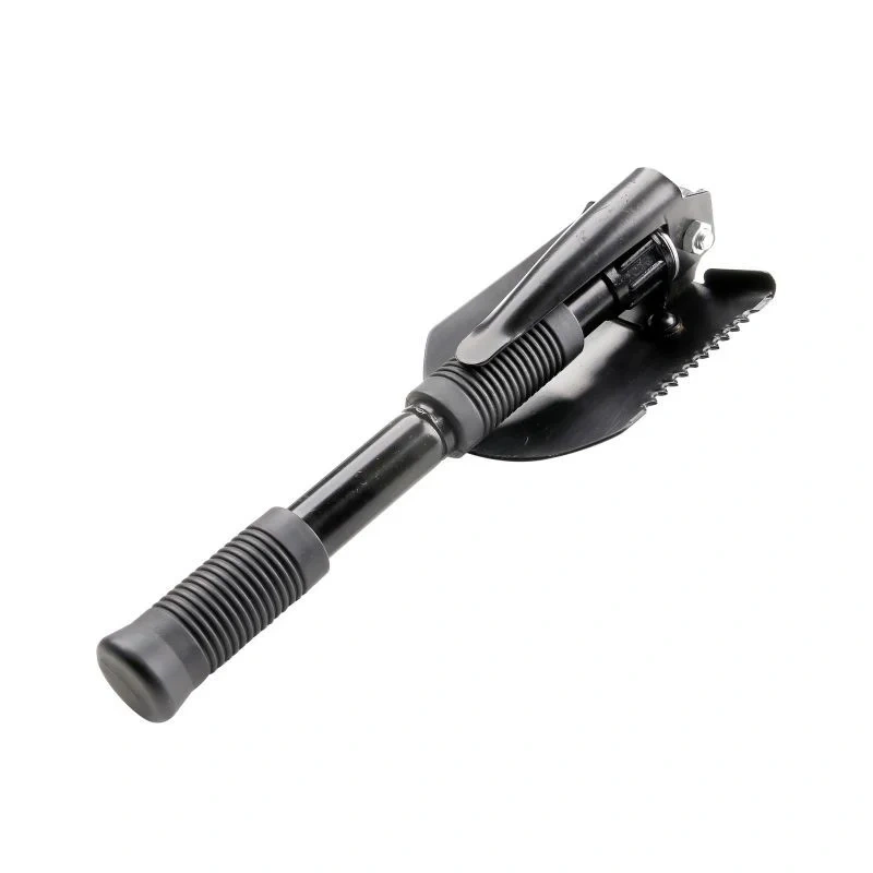 Pevná a odolná lopata je vyrobena z tvrzené nerezové oceli a její délka (ve složeném stavu) je 40 cm.