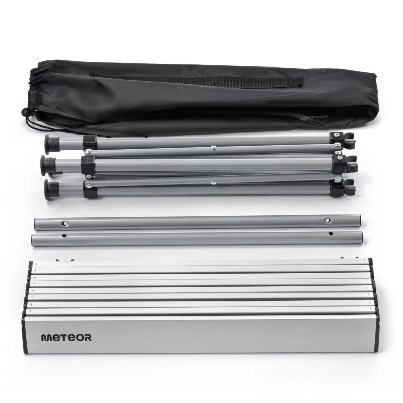 - Díky kompaktním rozměrům ve složeném stavu a přiložené přenosné tašce se stůl Meteor Bankada snadno vejde do kufru auta, karavanu nebo dokonce do batohu.