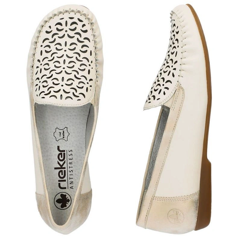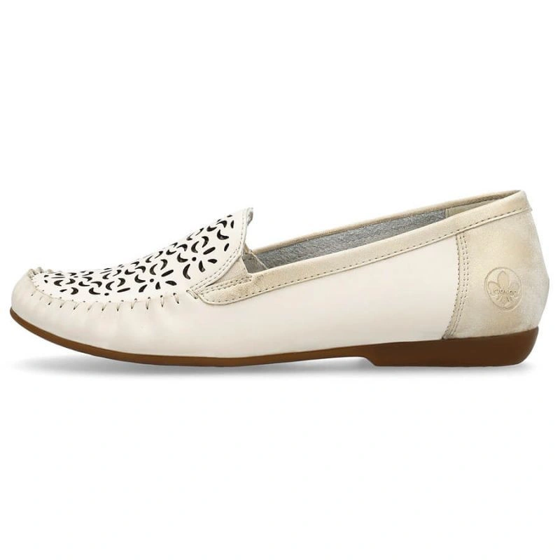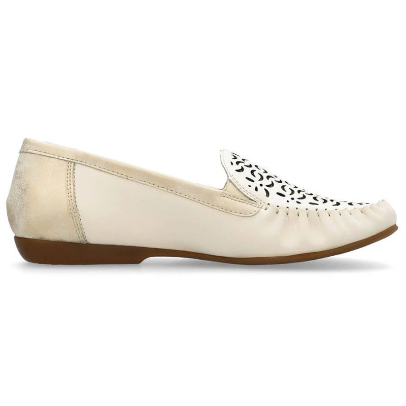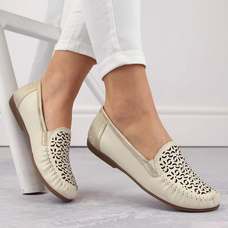 Skórzane komfortowe półbuty ażurowe Rieker W RKR658 beżowe