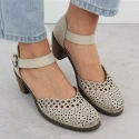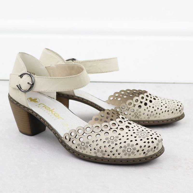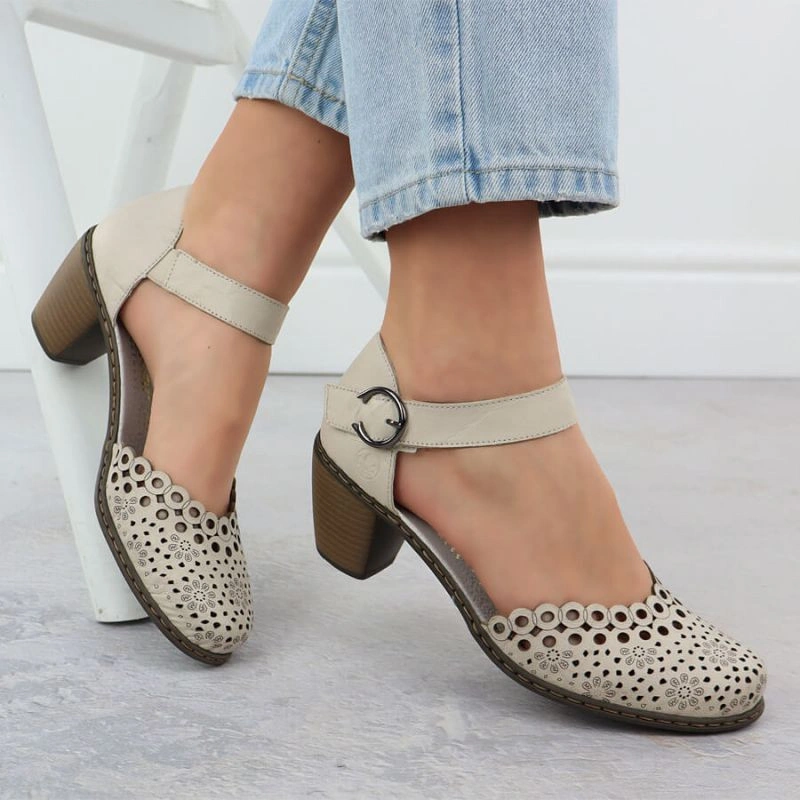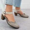 Popis Skórzane sandały damskie na słupku beżowe Rieker 40902-60