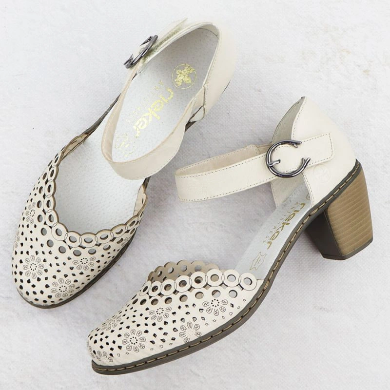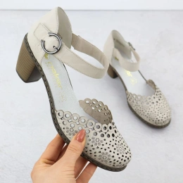 Skórzane sandały damskie na słupku beżowe Rieker 40902-60 37