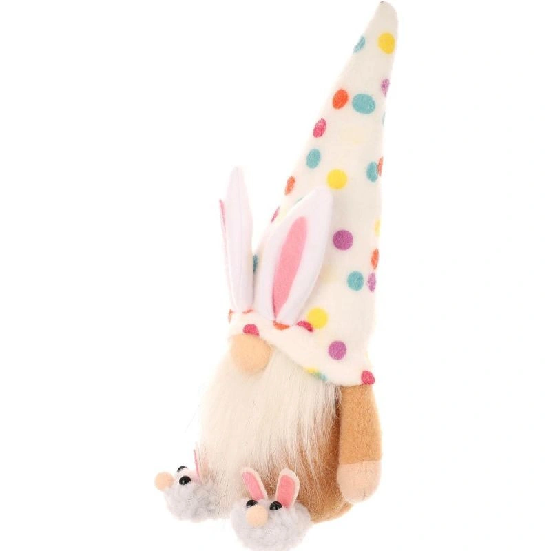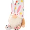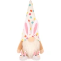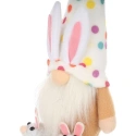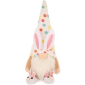 Dekorace 25CM SKŘÍTEK V JARNÍCH DOBRODRUŽSTVÍCH ozdobí váš domov během Velikonoc i po nich. Půvabný barevný skřítek s kloboukem v barevných hrášcích a králičími bačkůrkami upoutá pozornost dětí i dospělých.