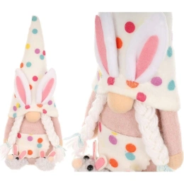 25CM SKŘÍTEK V DĚTSKÝCH BARVÁCH JARNÍ DEKORACE ozdobí váš domov během Velikonoc i po nich. Půvabný barevný skřítek s kloboučkem v pestrých barvách hrášku a králičími papučkami upoutá pozornost dětí i dospělých.