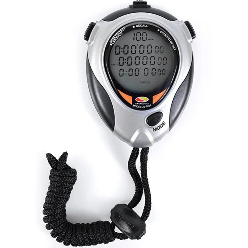 Stopky vybavené kalendářem a hodinami (formát 12/24h) a funkcí budíku.