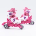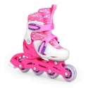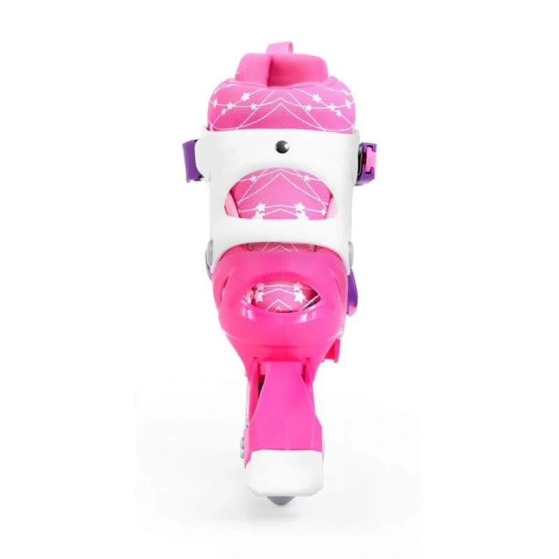 Kolečkové brusle vyrobené společností SMJ sport, s kolečky z gumy, díky kterým je jízda mnohem stabilnější, pohodlnější a bezpečnější než na plastových kolečkách. Kolečkové brusle jsou navíc vybaveny velmi kvalitními, odolnými karbonovými ložisky ABEC-5. Bota a skluznice jsou vyrobeny výhradně z kvalitního ABS plastu. Systém nastavení boty umožňuje rychlou výměnu boty v rámci čtyř velikostí - velmi praktické řešení, protože kolečkové brusle rostou s dětskou nohou. Nastavení velikostí je zajištěno zámkem. Přeměna kolečkových bruslí na inline brusle probíhá nastavením koleček pomocí přiloženého klíče podle návodu. - Velikosti: