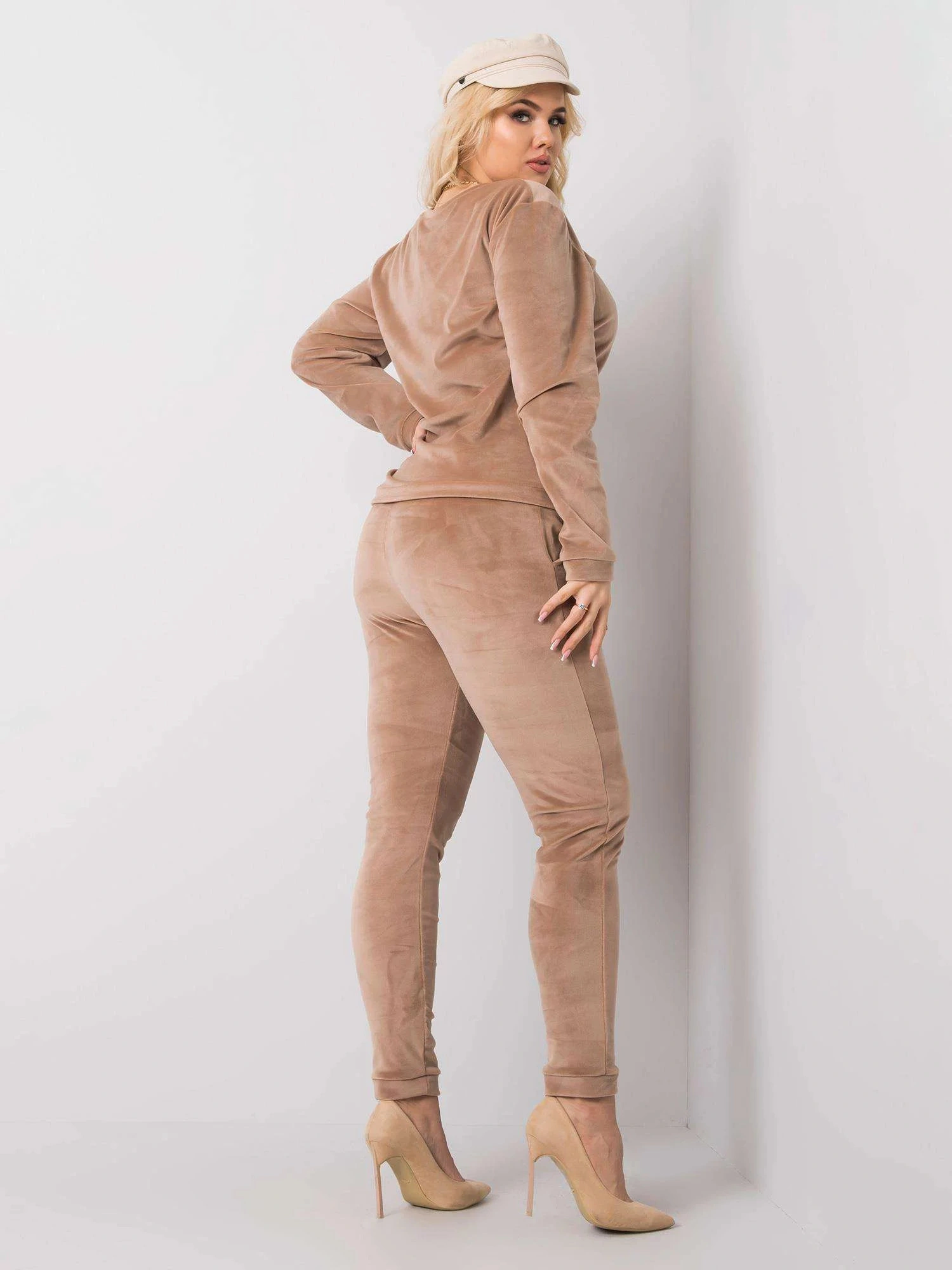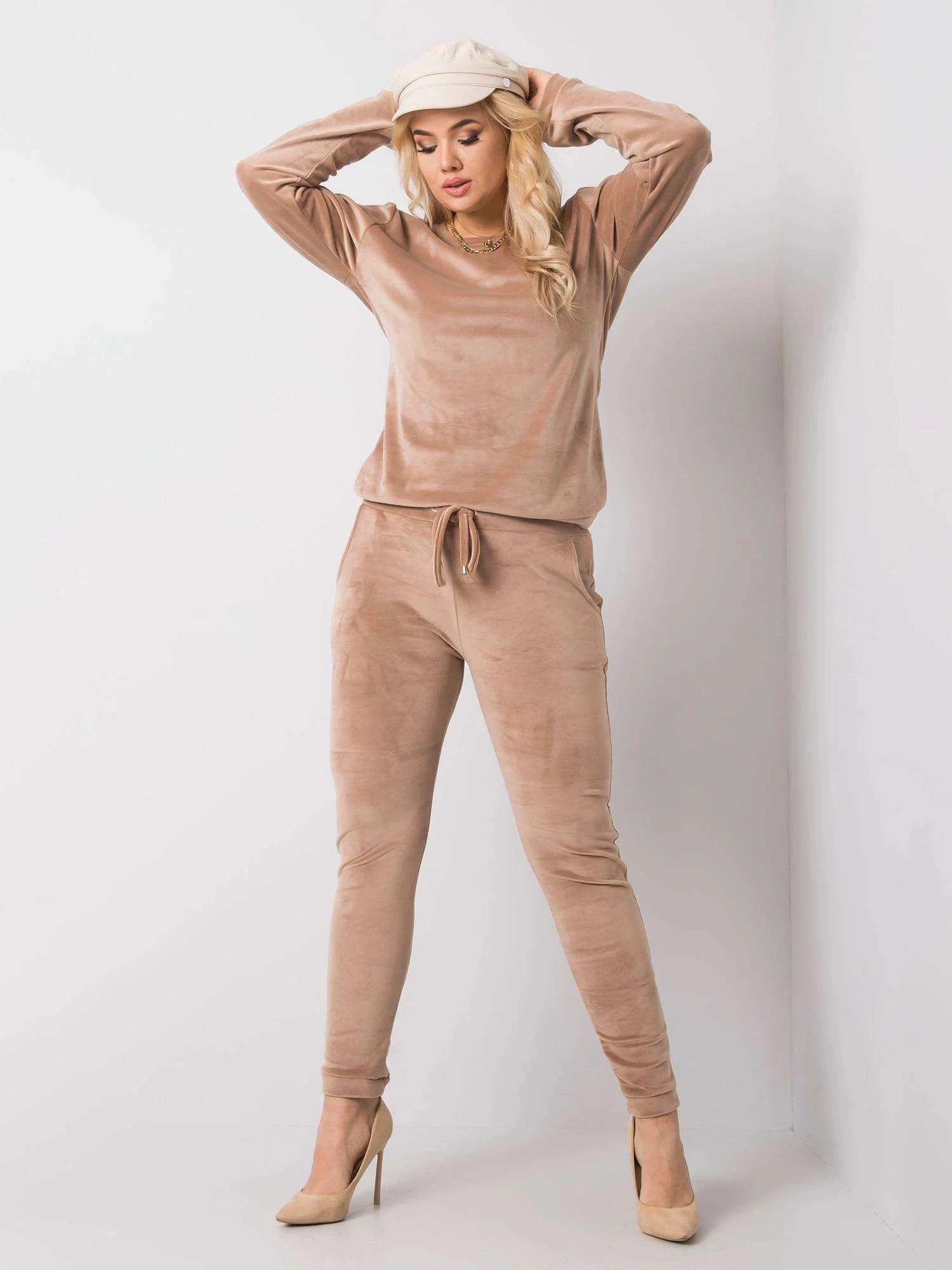 Béžová velurová souprava plus size.