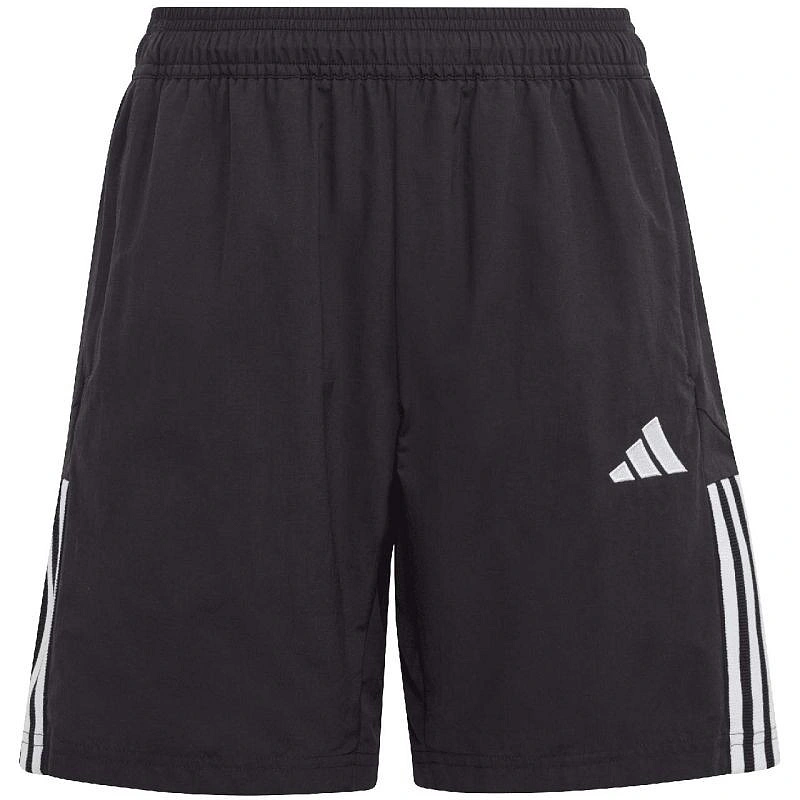 Dětské šortky adidas Tiro 23 Competition Downtime černé HI4716 Dětské šortky adidas jsou ideální pro aktivity i mimo ně. Elastický pas s možností nastavení pomocí šňůrky. Vyšívané logo. Model z fotbalové řady Tiro. Materiál: 100% recyklovaný polyester.