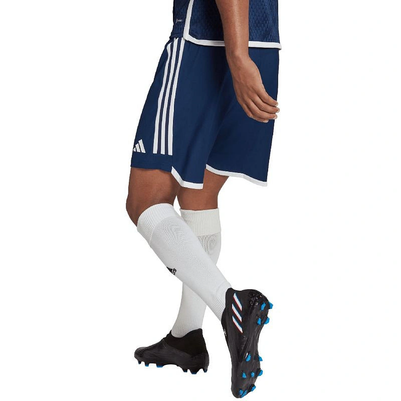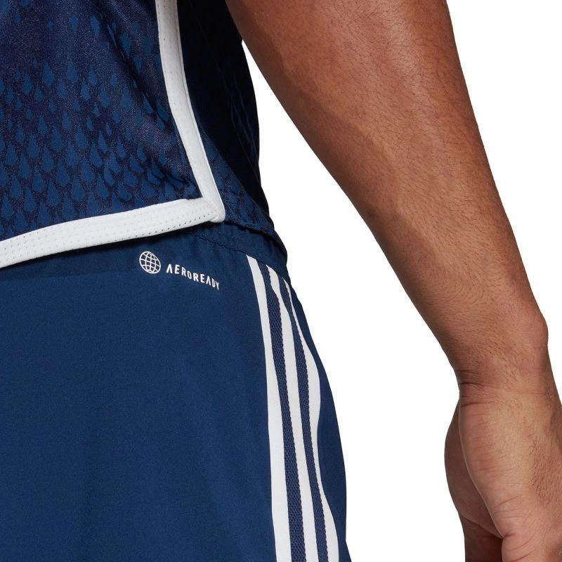 Pánské šortky adidas Tiro 23 Competition Match tmavě modré HT5697 Pánské šortky adidas jsou perfektní šortky z řady Tiro 23. Mají elastický pas nastavitelný pomocí vnitřní stahovací šňůrky. Technologie Aeroready pomáhá odvádět přebytečnou vlhkost do vnějších vrstev. Materiál: 100% recyklovaný polyester.