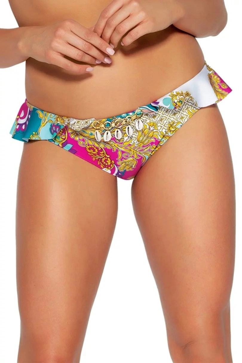 Brazyliany kąpielowe w pasie z falbanką Skład surowcowy:80% Poliamid, 20% Elastan