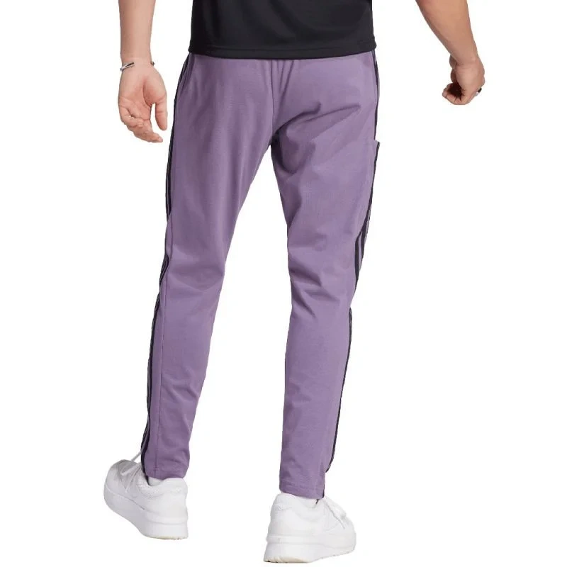 Pánské kalhoty adidas Essentials Single Jersey Tapered Open Hem 3-Stripes fialové IJ8699