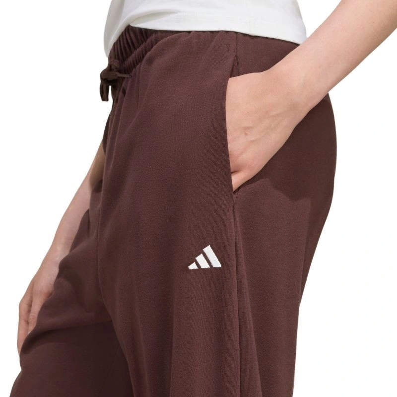 Dámské kalhoty adidas Essentials Small Logo French Terry Cuffed Brown JX3864 Dámské kalhoty adidas pro každodenní nošení. Volný střih. Elastický pas se stahovací šňůrkou a vnější šňůrkou pro nastavení. Materiál příjemný na dotek. Boční otevřené kapsy. Malé logo. Manžety na nohavicích. Materiál: 70% bavlna, 30% recyklovaný polyester.