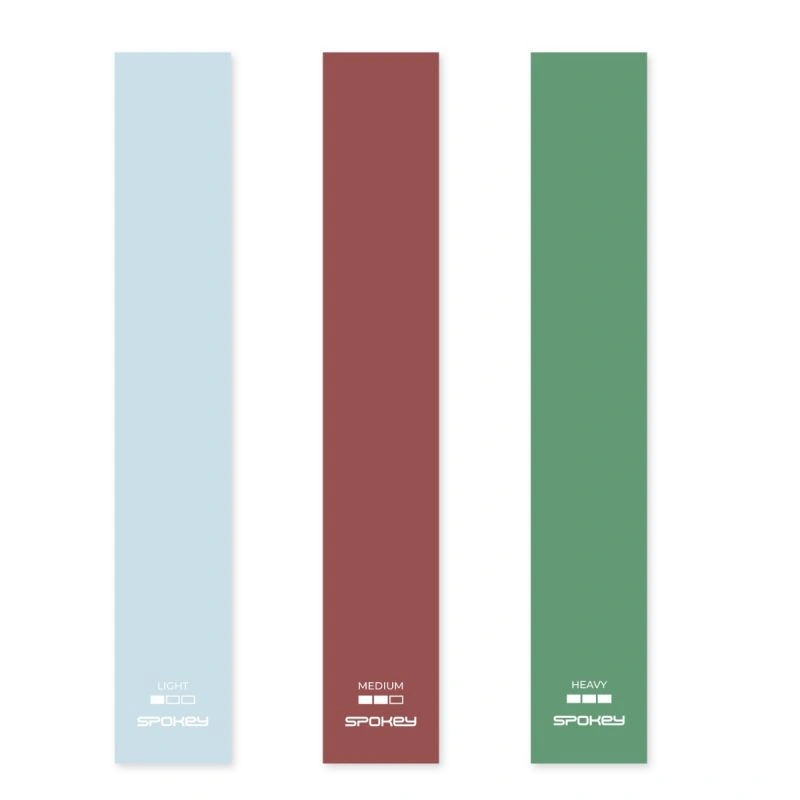 Zestaw gum mini band Spokey FLEX SET: stanowi niezbędnik każdej domowej siłowni - sprawdzą się doskonale podczas ćwiczeń rozciągających, w trakcie treningu fitness, aerobowego, pilatesu, jogi czy crossfitu, to trzy gumy o zróżnicowanej sile oporu (słaby, średni i silny) i zamkniętym obwodzie, które urozmaicą Twój trening i zaangażują partie mięśni, na których Ci zależy! Trenerzy personalni i profesjonaliści zgodnie twierdzą, że ćwiczenia z gumami to nieodzowny element w budowaniu formy oraz dbaniu o własną sylwetkę. To dzięki nim można urozmaicić trening tak, aby angażować konkretne partie mięśni, zwłaszcza te, na których Ci zależy. Z powodzeniem zastępują większość sprzętu do treningu, np. kettle czy hantle. Zróżnicowany trening z taśmami mini band FLEX SET to zestaw 3 gum mini band o zróżnicowanej sile oporu i grubości: 500 x 50 x 0.4mm - 2-4 kg, 500 x 50 x 0.8mm - 5-7 kg, 500 x 50 x 1.2mm - 8-12 kg. Dzięki temu są znakomitym wyborem zarówno dla począt
