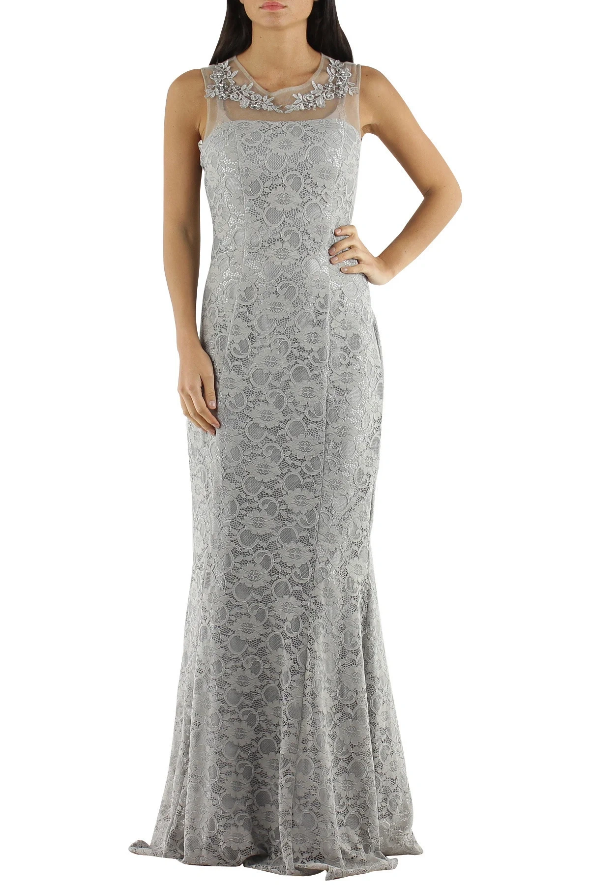 společenské šaty, krajkové, vyrobené z velmi kvalitní a silné krajkoviny. Šaty jsou vybaveny podšívkou a spodničkou. Pro živůtek byla u tohoto modelu vybrána síťovina pošitá romantickou plastickou krajkou a korálky se skleněnými kamínky, které tvoří tvary kytiček. Šaty se zapínají zipem v zadní partii, košíčky jsou polstrované a navazují na poloprůhledný živůtek. Velmi kvalitní model dlouhých krajkových šatů, jejichž střih bezpečně skryje případné nedostatky postavy. Šaty jsou vhodné pro společenské události. Jejich střih je univerzální a lze je použít opravdu u všech společenských příležitostí (divadlo, plesy, oslavy, rauty a další formální setkání.