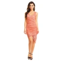 Společenské šaty a plesové šaty krajkové značkové Mayaadi Deluxe, asymetrická sukně a romatické provedení i střih. Vhodné využití těchto šatů je pro různé formální a slavnostní chvíle. Střih šatů je řešen bez rukávu a v přední části je sukně rozstřižená a vytváří tak dojem kratších šatů v přední části, nežli v zadní. U krajkových šatů značky MAYAADI tradičně naleznemé dvouvrstvé provedení, kdy je vrchní část krajková, která kryje vnitřní podšívku. V šatech je všitý boční skrytý zip pro pohodlné oblékání. V těchto šatech můžete jít do jakékoliv společnosti, formální i neformální, do divadla, na plesy, rauty, oslavy, na slavnostní oběd či večeři, oslavu narozenin, nebo na romantické rande s přítelem či manželem. Šaty jsou elastické a pohodlné na nošení, jsou vyrobené z na dotek příjemného materiálu.