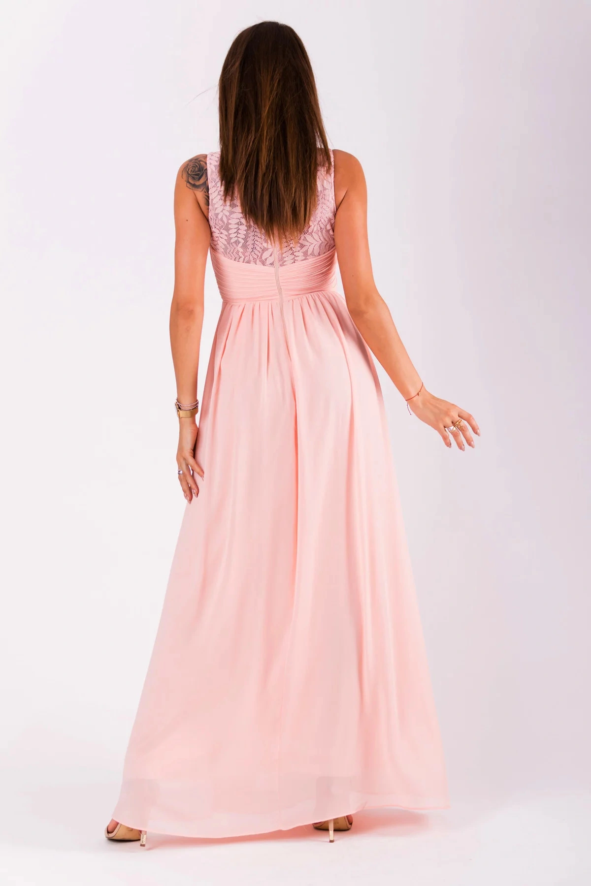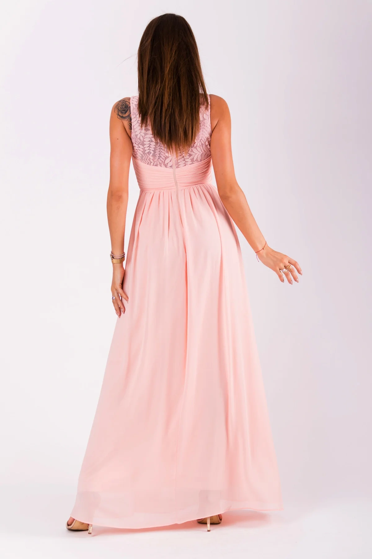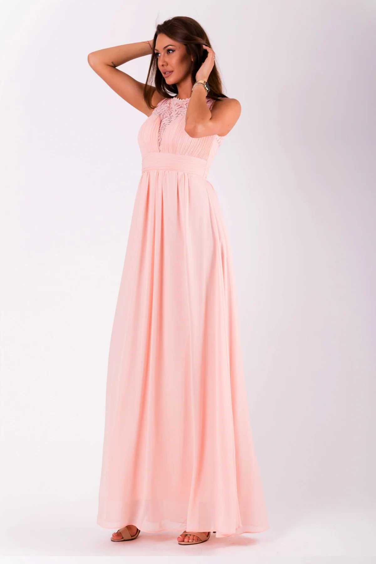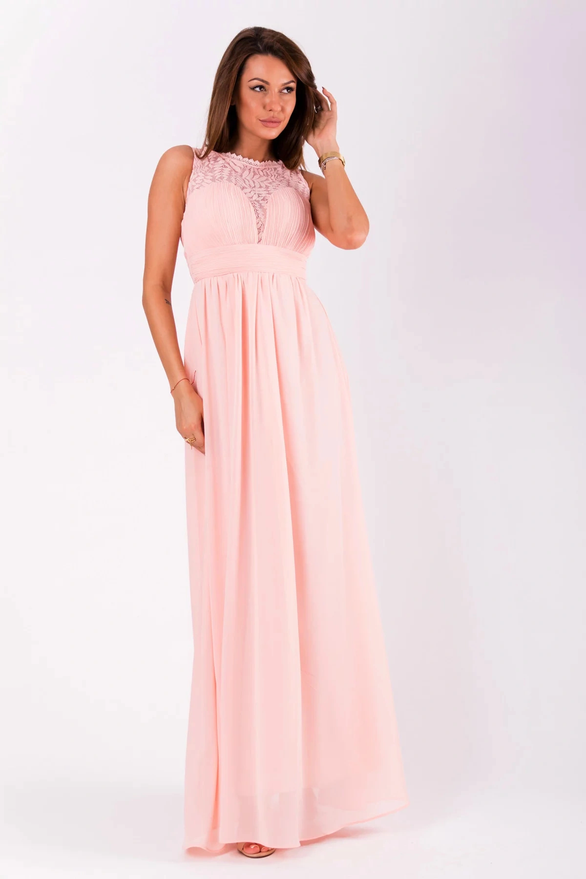 Společenské dámské šaty EVA&LOLA bez rukávů dlouhé růžové