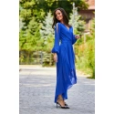 Asymetrické šaty v délce maxi. Rozšířený lem s rozparkem, top s vrstveným výstřihem a úžasné dlouhé bufetové rukávy s ozdobnými rozparky. Rukávy zakončené gumičkou. Šaty jsou v pase zúžené, což dokonale zvýrazňuje oblast pasu. Zapínání vzadu na zip s jemným odhalením zad. Šaty mají všitou spodničku, takže látka neprosvítá. Stačí jen jemné šperky a ohromíte všechny kolem sebe. Střih a délka budou ideální pro každou postavu, dodají vaší siluetě lehkost a opticky přidají pár centimetrů délky. Splývavá a jemná tkanina se bude jemně vlnit při každém vašem pohybu a zanechá nezapomenutelný dojem.