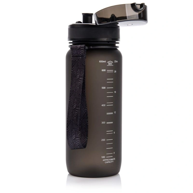 - Láhev je průhledná s matným povrchem a protiskluzovou úpravou.