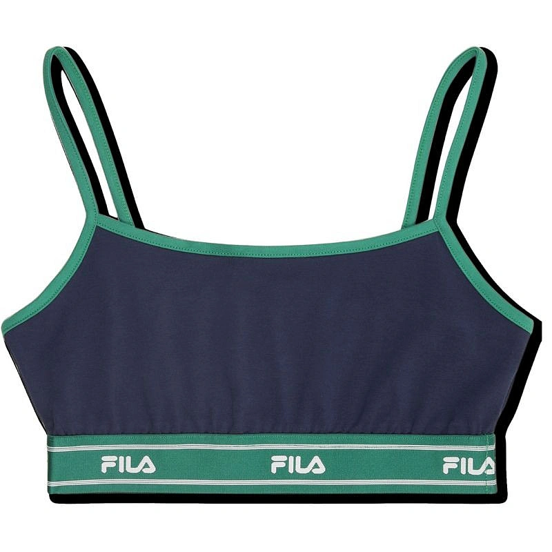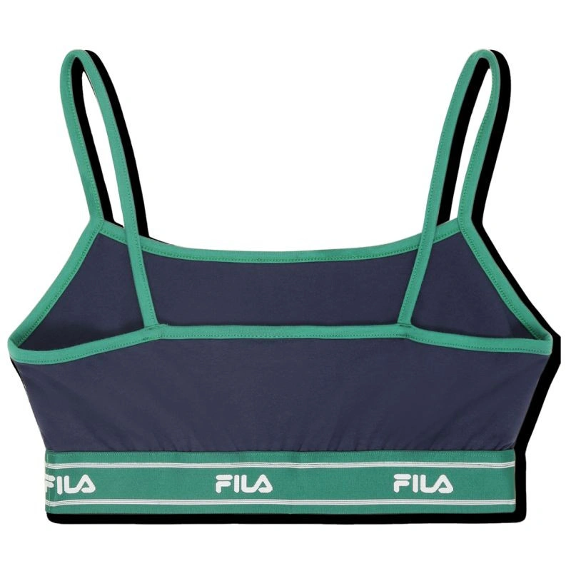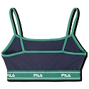 Sportovní podprsenka Fila Candelo navy blue-green FAW1203 50004 Dámská sportovní podprsenka Fila se hodí pro aktivity s nižší intenzitou.Poskytuje nízkou oporu.Podprsenka má tenká ramínka bez možnosti regulace a elastický pásek pod prsy.Materiál: 93 % bavlna, 7 % elastan.