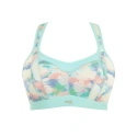 Dámská sportovní podprsenka veselých barev, s kosticemi, vyztužené košíčky.