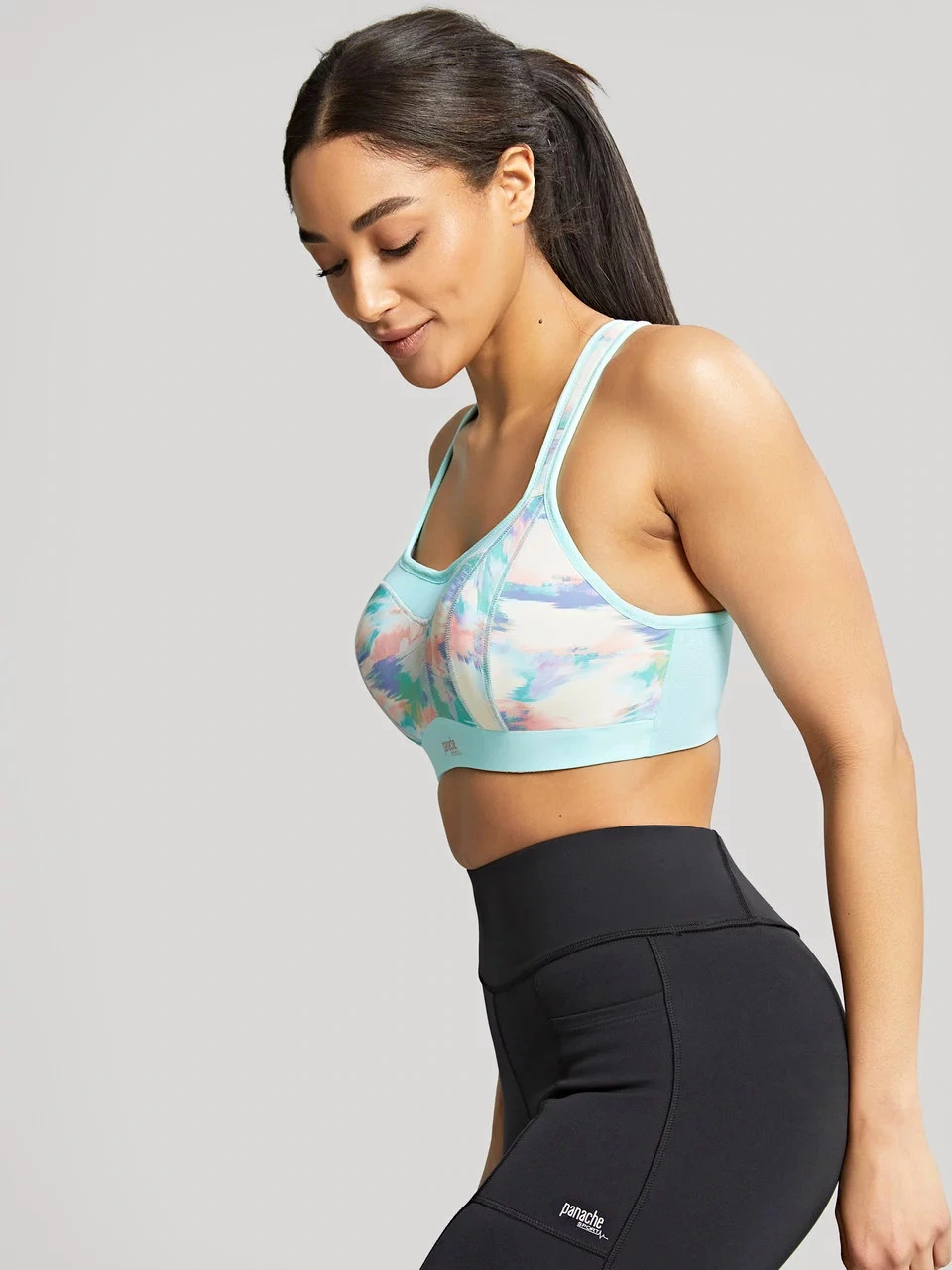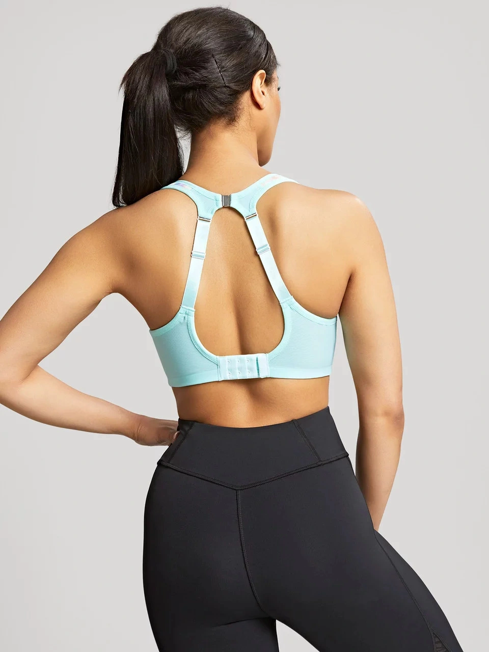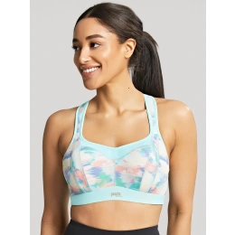 Dámská sportovní podprsenka veselých barev, s kosticemi, vyztužené košíčky.