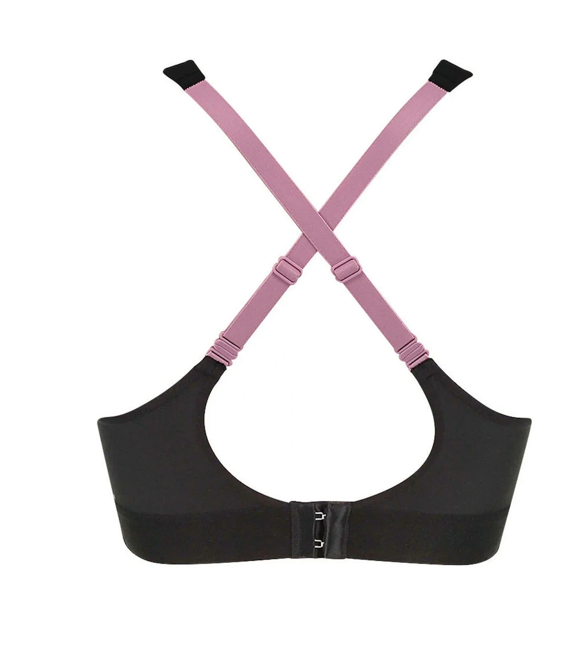 Nastavitelná vypodložená ramínka s praktickým zapínáním na patenty lze nosit i překřížená